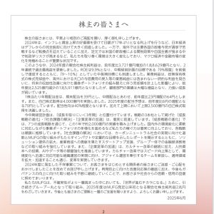 総会では、こうした成長戦略と社会貢献の両輪がさらに進展することを期待し、取締役の皆様から責任ある経営方針の説明を改めて伺いたいと思います。