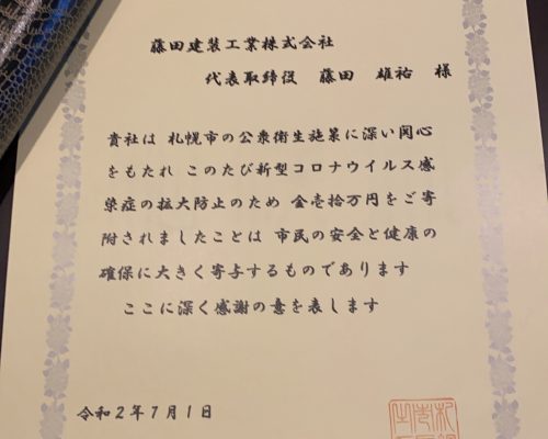新型コロナウイルス感染症の拡大防止のための寄附に対し札幌市より感謝状をいただきました。 ありがとうございます。 これからも私達に出来...